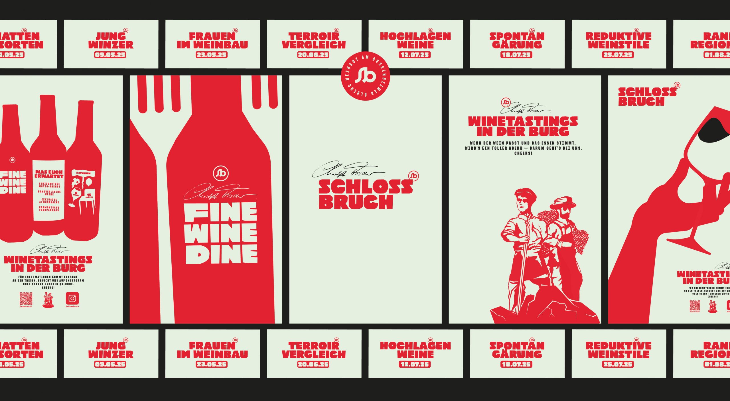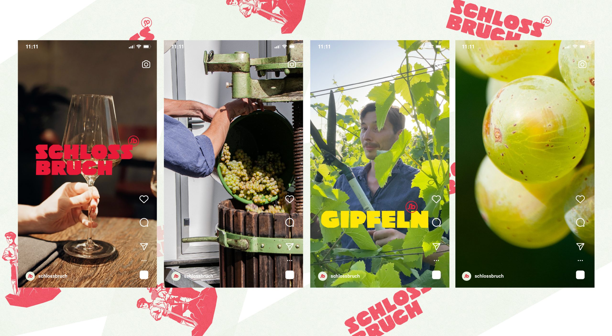 Das visuelle Erscheinungsbild ist modern, rau und präzise zugleich. Große Flächen, klare Ordnung und bewusst sichtbare Kanten erzeugen eine reduzierte, handwerklich geprägte Ästhetik. Die Farbwelt orientiert sich an den natürlichen Veränderungen des Reblaubs im Jahresverlauf und übersetzt den Rhythmus der Arbeit in Gestaltung. Auch die Social-Media-Kommunikation folgt diesem Ansatz: Sie dokumentiert das Winzerjahr nah und unverstellt – vom Weinberg bis in den Keller. Gestaltung und Inhalt greifen ineinander und machen Herkunft, Arbeit und Anspruch des Weinguts sichtbar.